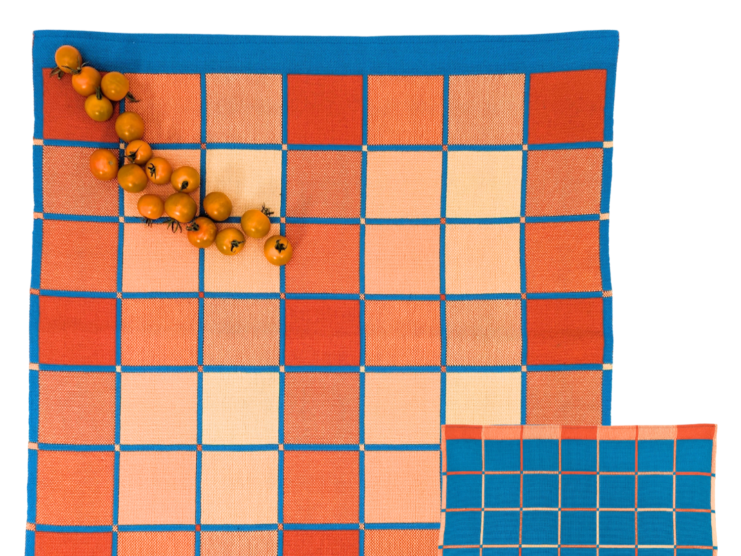 Caribbean Picnic is an exploration of how structure, color, spacing, and high contrast between warp and weft can create fabulous gradients that can be pushed to iridescence.